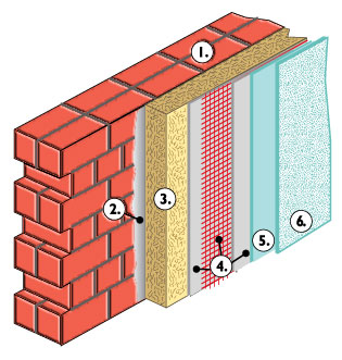 WDVS mit Mineralwolle-Dämmplatten PT Klebetechnik